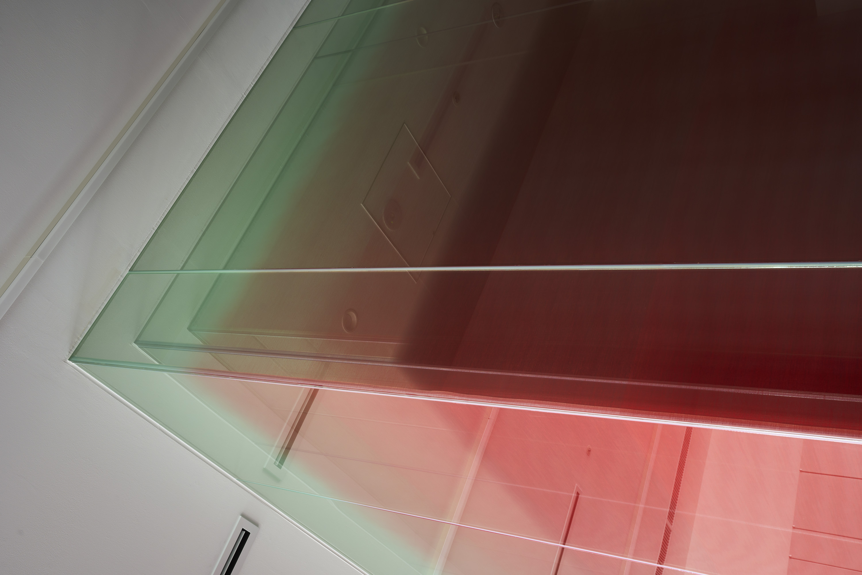 このプロジェクトでは障子の原型として几帳に着目し、几帳として古くから用いられてきた漆を含侵させた木綿をガラスに挟み込み、幾重にも重ねることで、こちらとあちらの光や音、気配を調停しようとする試みである。