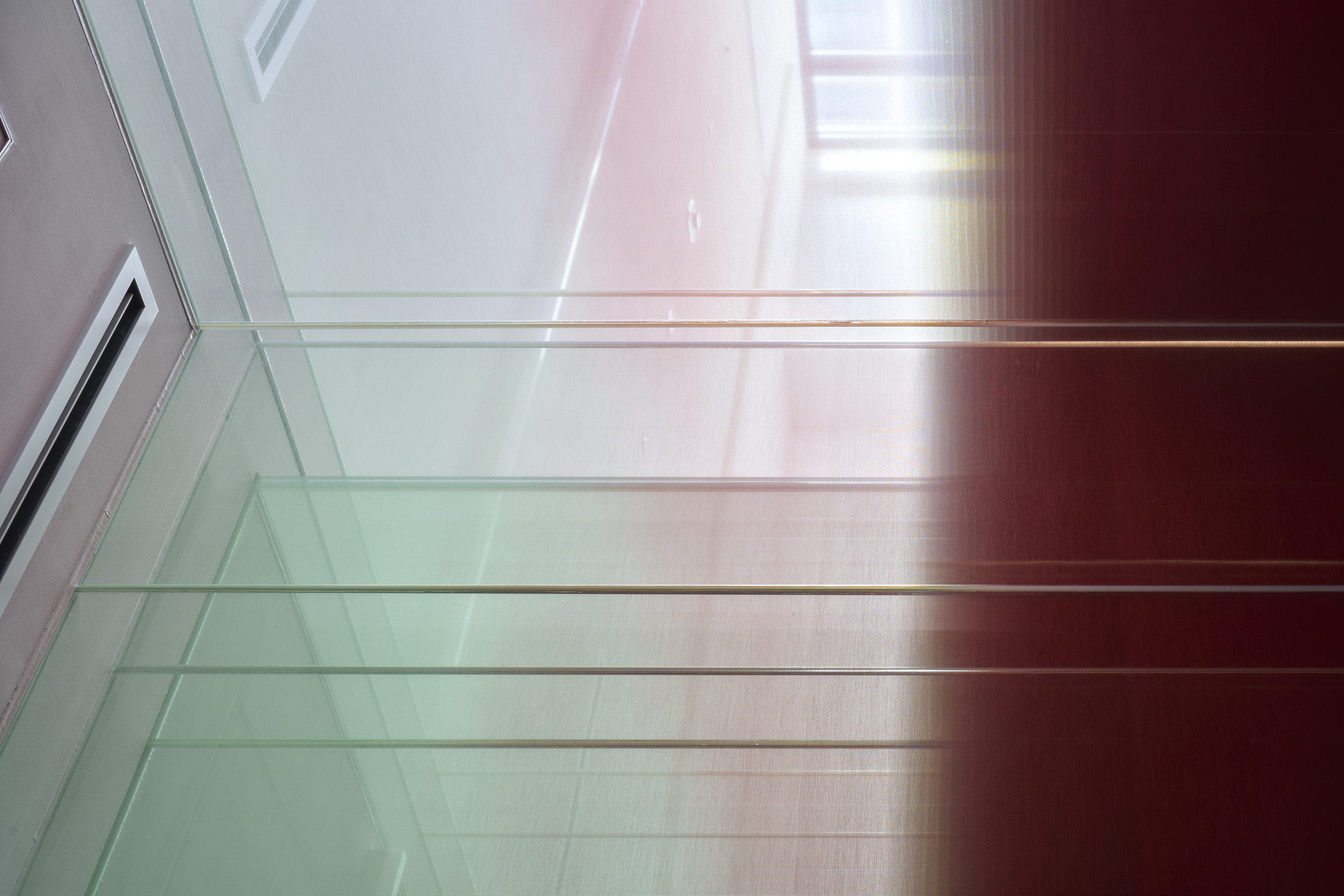 このプロジェクトでは障子の原型として几帳に着目し、几帳として古くから用いられてきた漆を含侵させた木綿をガラスに挟み込み、幾重にも重ねることで、こちらとあちらの光や音、気配を調停しようとする試みである。
